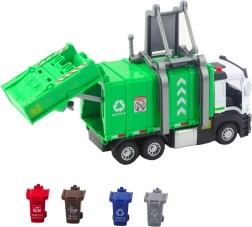 Lendkerekes szemétszállító autó fényekkel és hangokkal – 4 szemetes, zöld