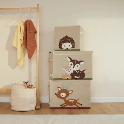 A bájos, őzgidás minta otthonossá teszi bármely gyerekszobát, miközben praktikus tárolóhelyet biztosít. A doboz stabil, mégis könnyű, így a gyerekek és a szülők is egyszerűen áthelyezhetik. Az összehajtható szerkezet helytakarékos, a tépőzáras fedél pedig diszkréten rejti a tartalmat.