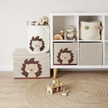 Stílusos és praktikus tárolókosár Piksi sünivel, amellyel pillanatok alatt rend lesz a gyerekszobában. Erős vászonból készült, stabil, a hosszabb füleknek köszönhetően könnyen hordozható, és kb. 38 l űrtartalommal rendelkezik. A belső vízálló PE bevonat megóvja a nedvességtől, így szennyeskosárként is használható. Ha épp nincs rá szükség, könnyen összehajtható és eltehető.