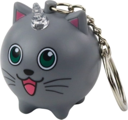 Aranyos, macska–unikornis alakú medál, ideális kulcsokra, hátizsákra vagy táskára. Többszínűen világító LED szarvat és szórakoztató hangeffektet kínál gombnyomásra. A tartós műanyag és a kompakt méret révén könnyű, praktikus, és mindig feldobja a hangulatot.