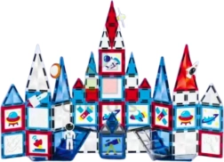Építs rakétákat, járműveket, magas tornyokat és fantasztikus 3D szerkezeteket a világűr ihletésében. A mágneses elemek űrhajós, rakéta és bolygó mintákkal kreatív játékra és történetalkotásra ösztönzik a gyerekeket. Az áttetsző, többszínű elemek fényben remekül mutatnak, és az erős mágneseknek köszönhetően stabilan tartják a formákat.