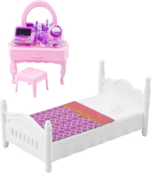 - Valósághű kiegészítők – fésülködőasztal, tükör, kiságy és kisszék.
