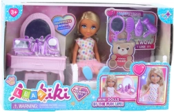- ANLILY baba 13 cm, kiságy ágyneművel, fésülködőasztal tükörrel, kisszék, kiegészítők készlete