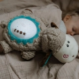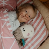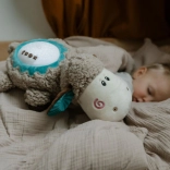 A bárány kellemes, meleg fénnyel világít, és dallamokat, valamint visszafogott természet hangokat játszik a stresszmentes, nyugodt elalváshoz.