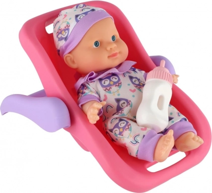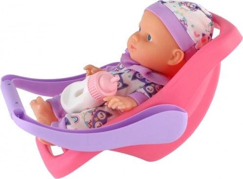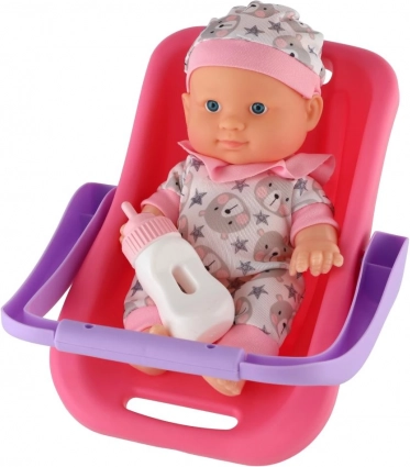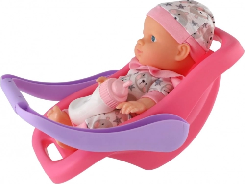 Aranyos baba merev műanyag testtel praktikus hordozóban/autósülésben, amely órákon át tartó fantasztikus szerepjátékos szórakozást nyújt. A tartós kivitelnek, a könnyű fogásnak és a mellékelt etető cumisüvegnek köszönhetően a kisebb gyermekek számára is ideális. 2 színváltozat közül lehet választani.