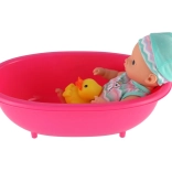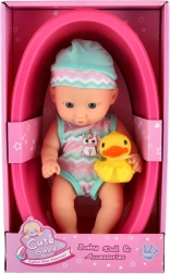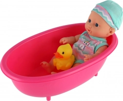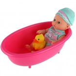 Ez a kedves baba készen áll minden fürdős kalandra. A könnyű műanyag kiskádban, sárga kacsával ösztönzi a gyerekeket a kreatív babagondozó szerepjátékra, a rutinok elsajátítására és a szociális készségek fejlesztésére.