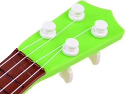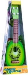 Aranyos, könnyű műanyagból készült gyerek ukulele, amely örömet szerez a kis zenészeknek. 4 húrral, állítható nyakkal, kompakt, 37 cm-es mérettel és bájos gyümölcsös mintával csábít a játékra, miközben fejleszti a ritmusérzéket és a zenei alapokat.
