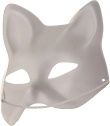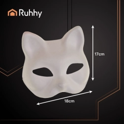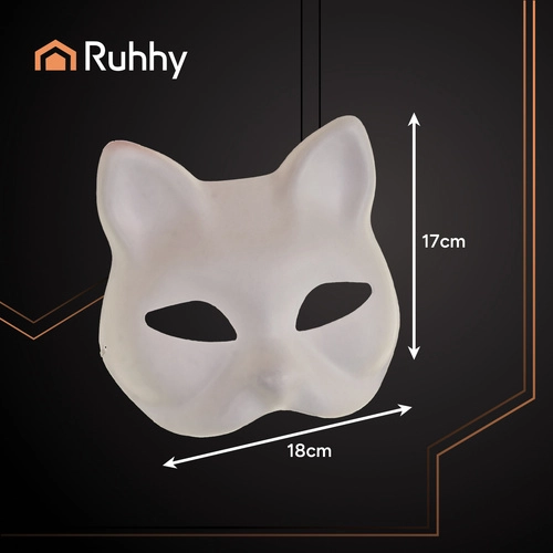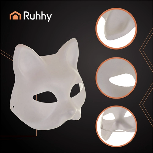 Fehér, macska alakú maszkok saját díszítéshez – praktikus 10 darabos RUHHY készlet. Ideális farsangra, Halloweenre, kézműves foglalkozásokra és tematikus eseményekre. Az elasztikus gumiknak köszönhetően kényelmes viselet, stabilan illeszkedik az arcra, és simára csiszolt felülete készen áll a kreatív DIY technikákra.