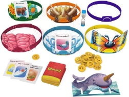 A népszerű Hedbanz kitalálós játék modern köntösben tér vissza. Húzd fel a tematikus fejpántot, csúsztasd be a kártyát úgy, hogy a többiek lássák, és kérdezz okosan: „Állat vagyok? Ételt ábrázolok? Tárgy vagyok?” Az egyszerű szabályoknak köszönhetően a játék azonnal érthető, és remekül működik családi összejöveteleken, születésnapokon és baráti estéken is.