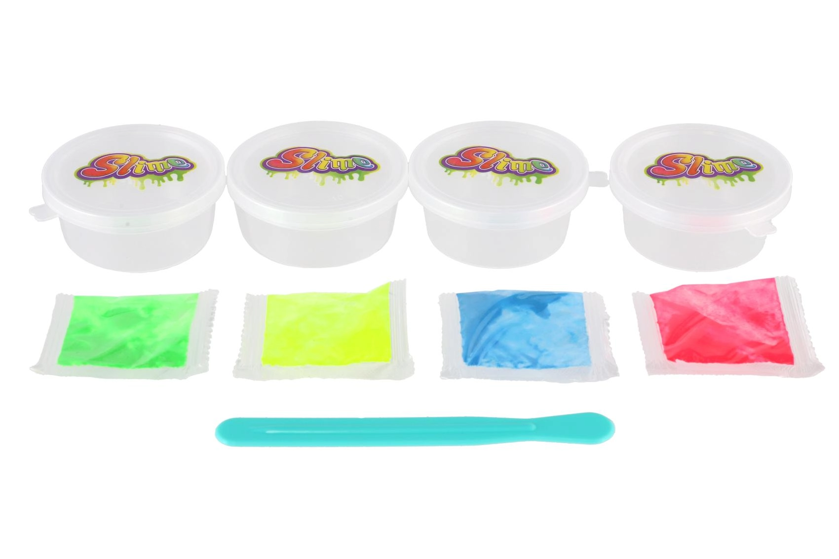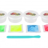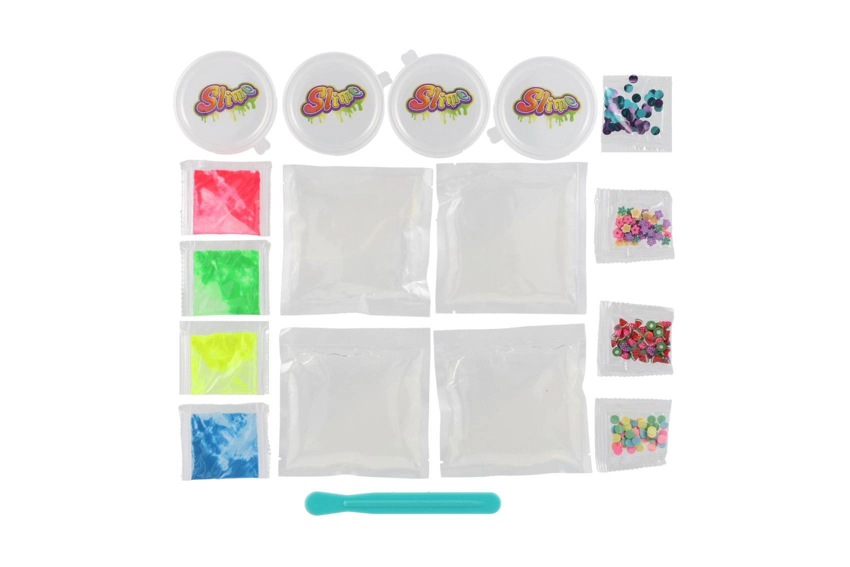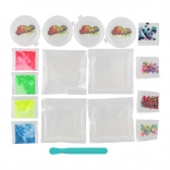 - Speciális por és összetevők a slime készítéséhez, dekorációk (készlettől függően)