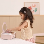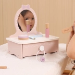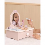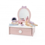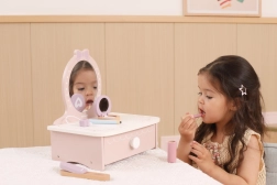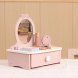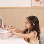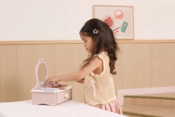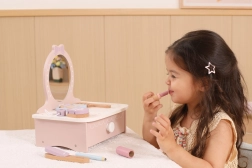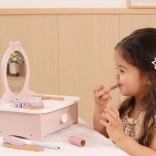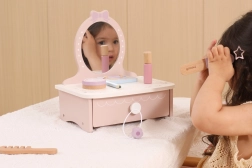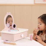 Ez a bájos, fából készült pipereasztal remek kiegészítője minden gyerekszobának. Fejleszti a fantáziát, a szociális játékot és a finommotorikát. Masszív fa kialakításának köszönhetően biztonságos és strapabíró a mindennapos játékhoz.