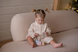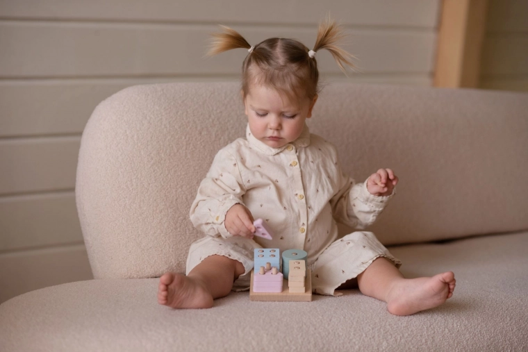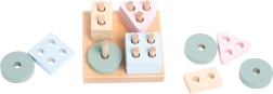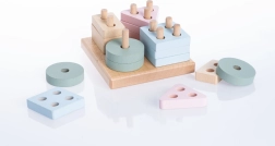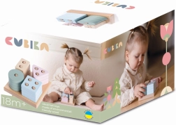 A CUBIKA Pastel alakválogató IV fa kirakó ideális eszköz az első tanuláshoz. A gyerekek 16 perforált geometriai formát helyeznek a négyzet alakú alapra, miközben természetes módon gyakorolják a formák és színek megkülönböztetését, a szem–kéz koordinációt és a türelmet. A pasztell színek vizuálisan megnyugtatóak és játékra ösztönöznek.