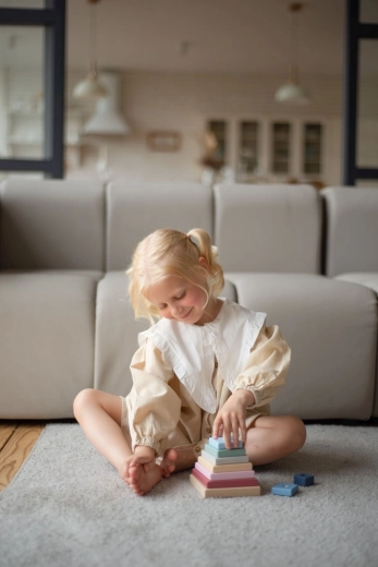 Ismerje meg a CUBIKA minőségi fa játékát a pasztell kollekcióból: egy 9 darabos színes piramist, amelyet a gyerekek egy ókori egyiptomi piramis formájára rakhatnak össze. Az építés fejleszti a finommotorikát, a szem–kéz koordinációt és egyben ösztönzi a képzeletet.