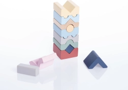 A Cubika Pasztell Torony XI egy átgondolt, 12 darabos fa kirakó finom pasztell árnyalatokban. A gyerekek a darabokat felfűzik és egymásra helyezik úgy, hogy azok megfelelően illeszkedjenek, így egy stabil, 16 cm magas torony jön létre. A fa precíz megmunkálásának köszönhetően a játék kellemes tapintású és biztonságos a kisgyermekek számára.