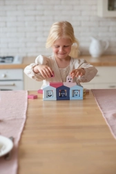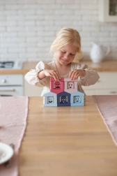A Cubika Pastel színes házikók építőkészlet rengeteg lehetőséget kínál a szabad játékra és az irányított tanulásra. A hat házikó mindegyikének megvan a maga „lakója” a megfelelő színben – a feladat a helyes párosítás, majd a figura elhelyezése a házban. Így a gyerekek természetes módon fejlesztik a színfelismerést, a szenzomotoros készségeket és a logikus gondolkodást. A kockákból könnyedén építhetők további építmények is, ezzel fejlesztve a kreativitást és a képzelőerőt.