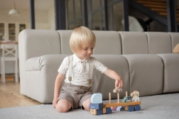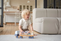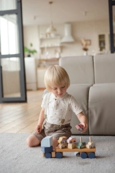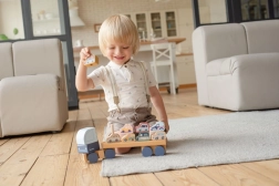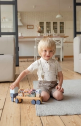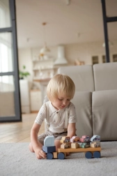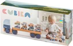 A Cubika fa kirakó pasztell árnyalatokban a gyerekeket és a szülőket is lenyűgözi a precíz megmunkálással (juhar és bükk) és a biztonságos, vízbázisú festékekkel. Az elemek könnyen megfoghatók és összeilleszthetők, így a gyerekek természetesen tanulják a koordinációt és a türelmet. A 32 cm hosszú kamion kényelmesen elszállítja mind a 8 kisautót.