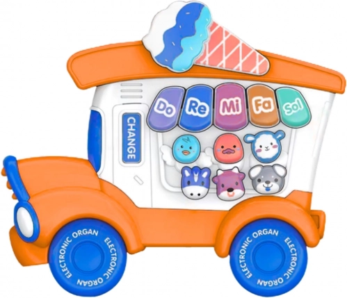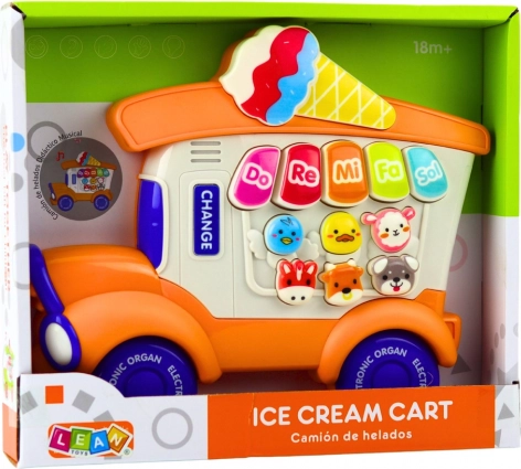 Vidám, oktató zongorácska fagylaltos kisautó formában, amely első pillantásra felkelti a gyerekek figyelmét. Kínál Do–Re–Mi–Fa–Sol hangokat, aranyos hangeffekteket és dallamokat, melyek fejlesztik a hallást, a ritmusérzéket és a koordinációt. Tartós kivitel biztonságos anyagokból, élénk színekkel a vidám és ösztönző játékért.