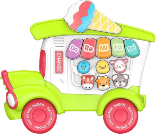 A fagyis autó ihlette zenélő zongora azonnal magára vonja a figyelmet barátságos hangjaival. A gyerekek könnyedén elsajátítják a zene alapjait a Do Re Mi Fa Sol hangokat adó billentyűknek és a vidám dallamoknak köszönhetően. A játék fejleszti a mozgáskoordinációt, a memóriát és a képzelőerőt.