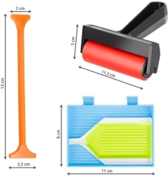 A csomagban található 4 applikátor („toll”), 3 rovátkolt tálca a gyémántok válogatásához és felvételéhez, csipesz, ragasztó, hordtáska és henger. A készlet kezdőknek és haladóknak egyaránt ideális, és remekül alkalmas közös alkotásra gyerekekkel és barátokkal.