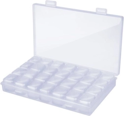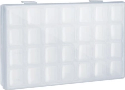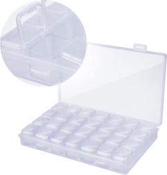 Az átlátszó, rekeszes organizer címkékkel tökéletesen szétválogatva tartja a gyémántokat. Könnyen megtalálja a megfelelő színt, így a munka gyorsabban halad.