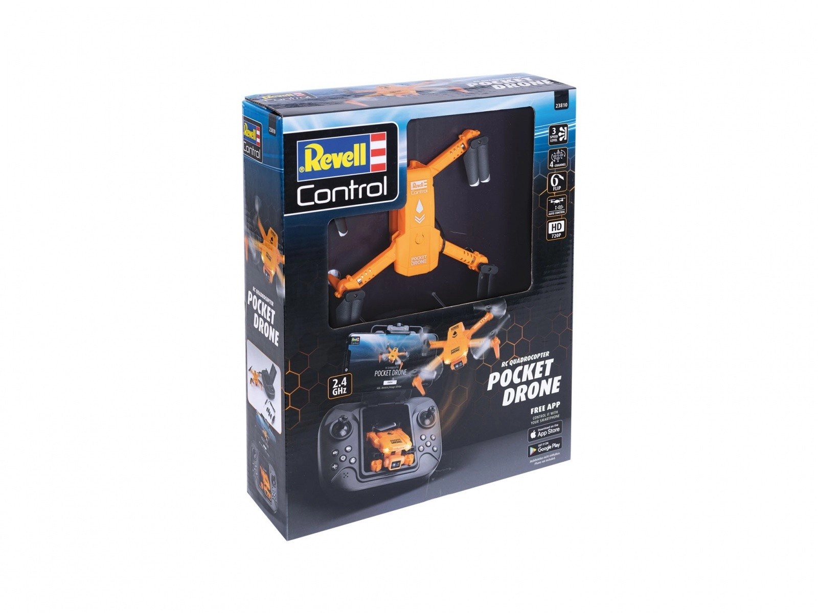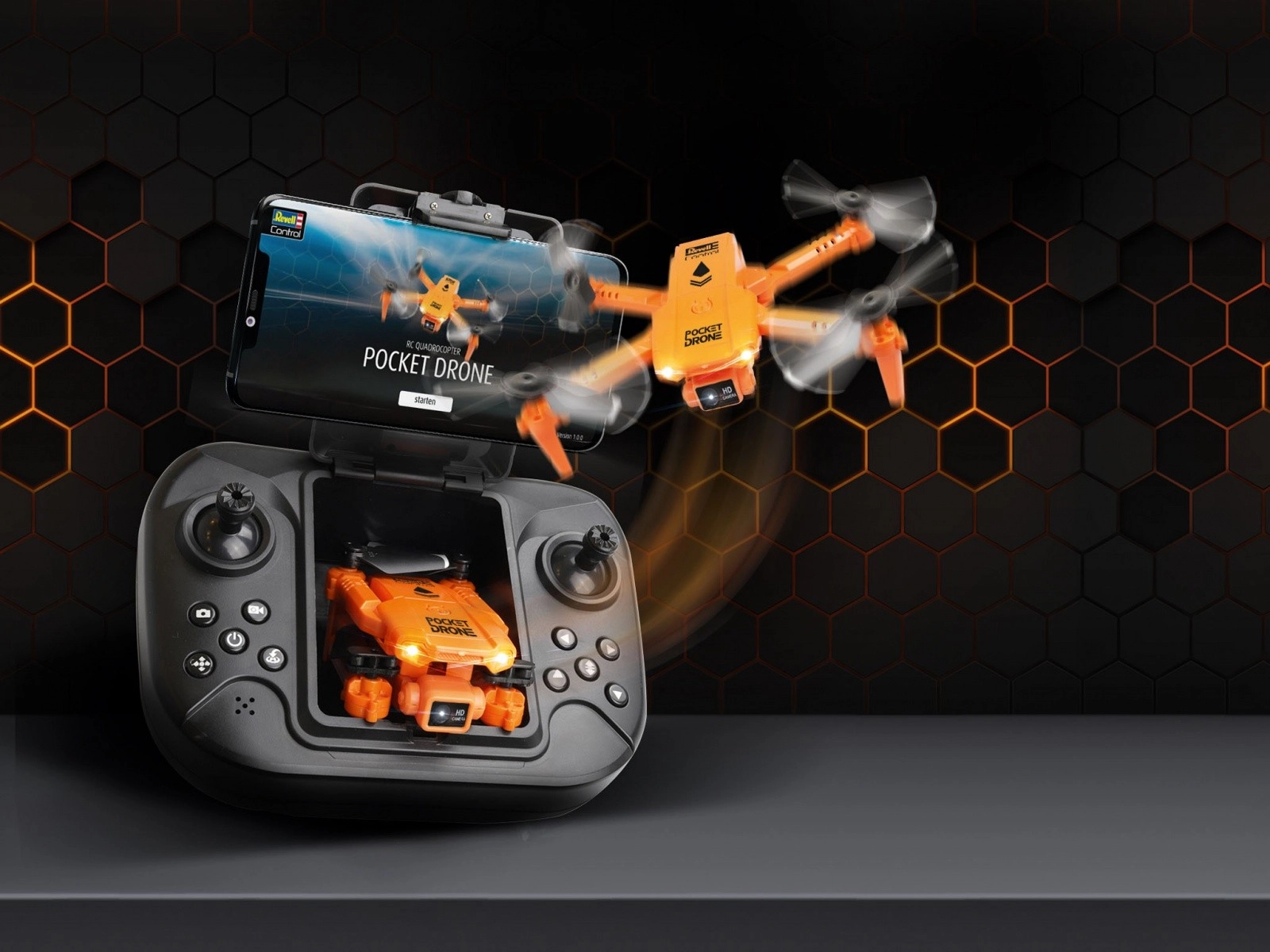 A REVELL Control zsebdrón kis méretben nagy szórakozást nyújt. 110 mm hosszával, 134 mm szélességével és 35 mm magasságával kényelmesen elfér a vezérlő rekeszében, és mindig kész a felszállásra. A beépített 720p kamera alap fotó- és videóképet továbbít élőben az okostelefonodra, így a világot új perspektívából láthatod.