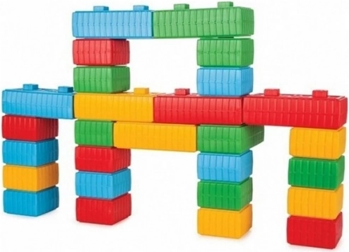 A készlet széles lehetőségeket kínál: a kerekes kisautótól az egyszerű épületekig. Az építés közben a gyerekek természetes módon gyakorolják a formák és színek felismerését, valamint fejlesztik a kéz–szem koordinációt.