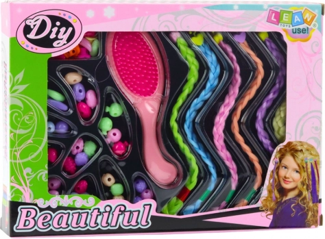 Gyerek DIY hajfonó készlet színes tincsekkel, gyöngyökkel és kefével. Biztonságos anyagok, egyszerű használat, kreativitásfejlesztés és szuper ajándék.