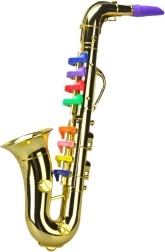 Az arany színű gyerek szaxofon ideális első hangszer a kis zenészeknek. Kínál 8 színes billentyűt, egyszerű, elemek nélküli működést és könnyű műanyag kivitelét. Támogatja a hallás, ritmus és finommotorika fejlődését, és motiválja a gyerekeket a zene világának felfedezésére.