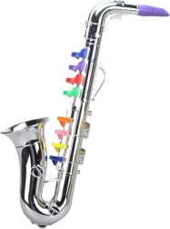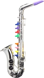 Az ezüstszínű, színes billentyűs gyerekszaxofon remek belépő a zene világába. Az elemek nélküli, egyszerű kezelés azonnali játékot, hangkísérletezést és alap dallamok elsajátítását teszi lehetővé. Kitűnő választás kis zenészeknek vagy eredeti ajándéknak.