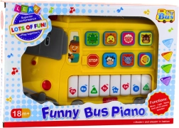 A sárga, iskolabusz formájú oktató zongora nagyszerű társ az első zenei lépésekhez. Színes kialakítása, egyszerű kezelése és a fényhatások felkeltik a figyelmet, támogatják a gyerekek természetes kíváncsiságát.