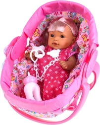 A cuki baba hordozóval minden gyermeket megörvendeztet valósághű funkcióival. A baba beszél és gagyog (angolul szólítja, hogy „mama” és „tata”), az üvegből való itatás után pisil, mozgatható végtagokkal és levehető ruhával rendelkezik. A készlet része egy hordozó takaróval, egy cumisüveg és egy cumiláncra rögzített cumi – tökéletes ajándék díszdobozos csomagolásban.