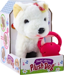 Az interaktív kutyus úgy viselkedik, mint egy igazi barát – a hátának megsimogatására elindul, hangokat ad ki és örömében csóválja a farkát. A póráz csatlakoztatása után a gomb megnyomásával aktiválható a séta, az ugatás és a nyüszítés. A puha plüss anyagnak köszönhetően ideális ölelgetni való, és gyorsan a mindennapi játékok kedvenc társa lesz.
