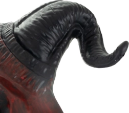 • Feltűnő dizájn: piros alap, fekete szarvak, markáns 3D részletek