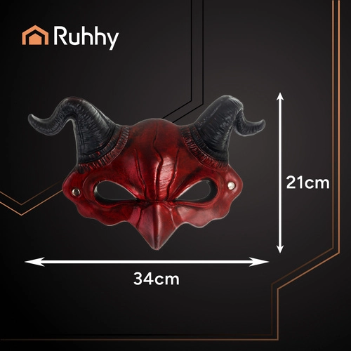 Univerzális mérete és rugalmas rögzítése biztosítja, hogy a legtöbb felnőttnek és idősebb tinédzsernek is megfeleljen. A realista 3D elemek az arcon és a szarvakon hatásos összképet keltenek, amely férfi és női jelmezekhez egyaránt illik – az ördögtől és démonoktól a szörnyeken át a mitológiai alakokig.