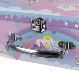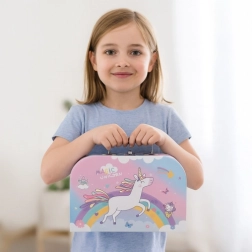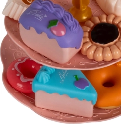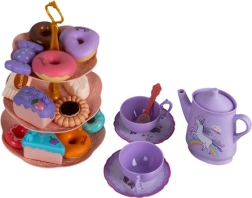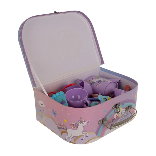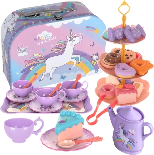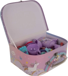 Bájos gyermek teaszett praktikus bőröndben, amely örömet szerez minden kis házigazdának. Tartalmaz teáskannát, csészéket, tányérokat, tálcát, háromszintes édességtartó állványt és 21 finomságot. A minőségi anyagoknak köszönhetően ellenáll a repedéseknek és karcolásoknak, támogatja a kreatív játékot és a szociális készségek fejlődését, valamint simára csiszolt felülete könnyen tisztítható.