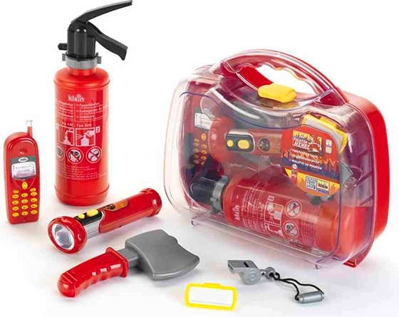 Teljes mentős szerepjáték a kis hősöknek! Ez a tűzoltó bőrönd mindent tartalmaz az akciódús kalandokhoz: működő tűzoltó készülék permetező funkcióval, mobiltelefon, fejsze, névkitűző, sípp és zseblámpa.