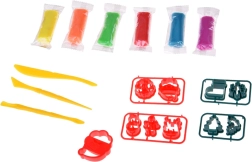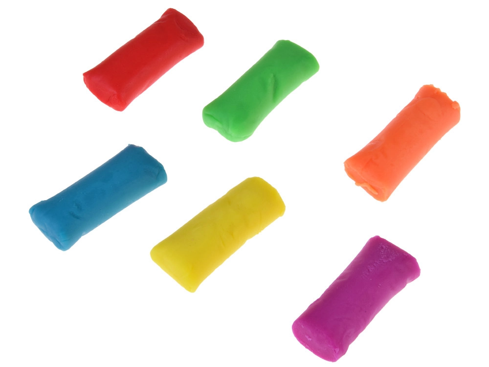 - 6 élénk gyurmaszín: zöld, kék, piros, lila, sárga, narancssárga