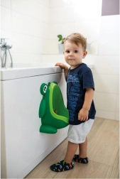 A praktikus FreeON Béka gyerek piszoár remek segítség a fiúknak a bili- és vécéhasználat gyakorlásához már 6 hónapos kortól. A tapadókorongoknak köszönhetően könnyen rögzíthető a falra, állítható magassága pedig alkalmazkodik a gyermek növekedéséhez. A forgó célkorong ösztönzi a pontos célzást, a kivehető tartály pedig gyors tisztítást tesz lehetővé. A strapabíró műanyag és a vidám dizájn segít a gyorsabb hozzászokásban az önálló vécéhasználathoz.