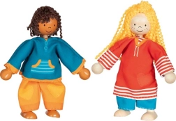 A rugalmas Fynja és Fabio babák a praktikus, tolófedeles fa dobozban örömet szereznek minden kisgyermeknek, aki szeret családosdit játszani. A hajlítható végtagoknak köszönhetően a babák tudnak ülni, állni és feküdni, és remekül illenek a Goki babaházakba vagy önálló játékhoz is. A készlet része 8 szett ruha, a végtelen kombináláshoz és a fantázia fejlesztéséhez.