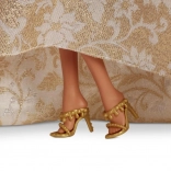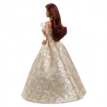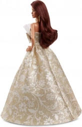 Ez az ünnepi Barbie elbűvöl hosszú barna hajával, látványos fülbevalóival és a báli divat által ihletett gyönyörű ruhájával. A gazdag szoknya arany-fehér mintával, tüll részletek és a feltűnő masni luxus hatást kelt, és egyaránt kitűnik játék közben és polcon kiállítva.