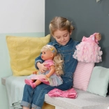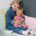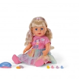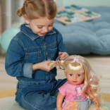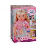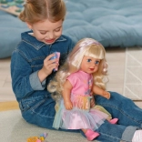 A BABY born Carla baba rengeteg lehetőséget ad a kreatív játékra. A hosszú, selymes nejlon haj ideális fésüléshez, copfokhoz és fonatokhoz. A 7 darabos kiegészítő szett – kefe, hajgumik és csatok – támogatja a fantáziát a mindennapi styling során.