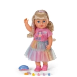 Kiváló mozgathatóságának köszönhetően könnyedén mozgatja a karjait, forgatja a fejét, és rugalmas térdízületei vannak, így kényelmesen ültethető és állítható. A masszív test a vizes játékot is lehetővé teszi, így Carla élvezheti a fürdési rituálékat a kádban. A színes öltözet szivárványos tüllszoknyával és rózsaszín cipőcskékkel kiemeli játékos stílusát.