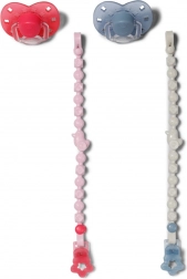 A cumi klipsz/lánc segítségével a baba ruhájához rögzíthető, így mindig kéznél van, és nem vész el játék közben.