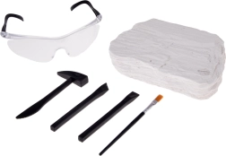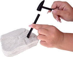 Változtassa az asztalt egy mini régészeti lelőhellyé. Minden blokkban egy véletlenszerűen kiválasztott koponyafosszília rejtőzik – lehet mamut, kardfogú tigris, krokodil, gyapjas orrszarvú, afrikai bivaly, sas, hosszúszarvú juh vagy akár ember-majom. A vésőknek, kalapácsnak és ecsetnek köszönhetően a gyerekek lépésről lépésre felfedik az egyes részeket, megtisztítják, és egy egyedi modellt kapnak.