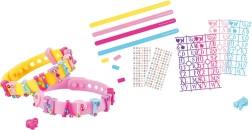 Készítsd el saját, egyedi ékszereidet ezzel a kreatív DIY készlettel. A csomag tartalmaz 4 állítható gumis karkötőt különböző színekben, gazdag választékban betűs medálokat nevek és feliratok személyre szabásához, valamint színes matricákat további díszítéshez. Szórakoztató tevékenység, amely fejleszti a kreativitást és a finommotorikát, és minden karkötőt egyedülálló kiegészítővé varázsol.