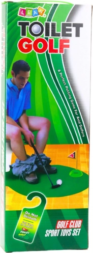 Szórakoztató WC-golf készlet szőnyeggel, putterrel és labdákkal