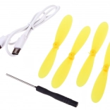 - RC pillangó drón, varázspálca alakú vezérlő, 3,7 V 500 mAh akkumulátor, 4 pótpropeller, USB‑C töltőkábel, csavarhúzó, angol nyelvű használati útmutató