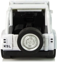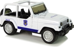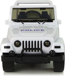 Légy a törvény őre és indulj akcióba! A fehér terepjáró rendőrautó tökéletes választás azoknak a gyerekeknek, akik szeretik az akciót és a kalandot. Kompakt mérete jól illik a gyerekek kezébe, míg a gumírozott abroncsok és a pull-back meghajtás szórakoztató, rövid távú haladást biztosítanak. Az autón nyitható első ajtók vannak, részletes belsővel és kék rendőrségi elemekkel, POLICE felirattal.