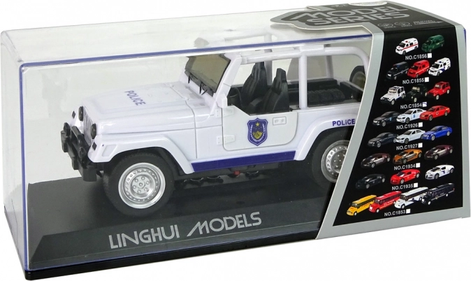 terepjáró rendőrautó fehér, effektekkel és felhúzós meghajtással