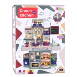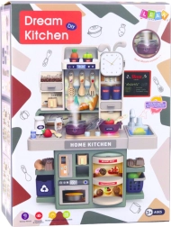 A csomag bőséges tartozékkal érkezik – lábasok, serpenyők, tányérok, evőeszközök, élelmiszerek, palackok, szemetes és további elemek. A konyha támogatja a kreatív játékot, a motorikus készségek fejlesztését és a mindennapi házimunkák játékos elsajátítását.